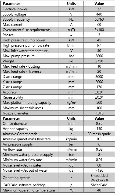 40kW electrical motor for additional cutting power and using a 0.4mm orifice at 3800bar